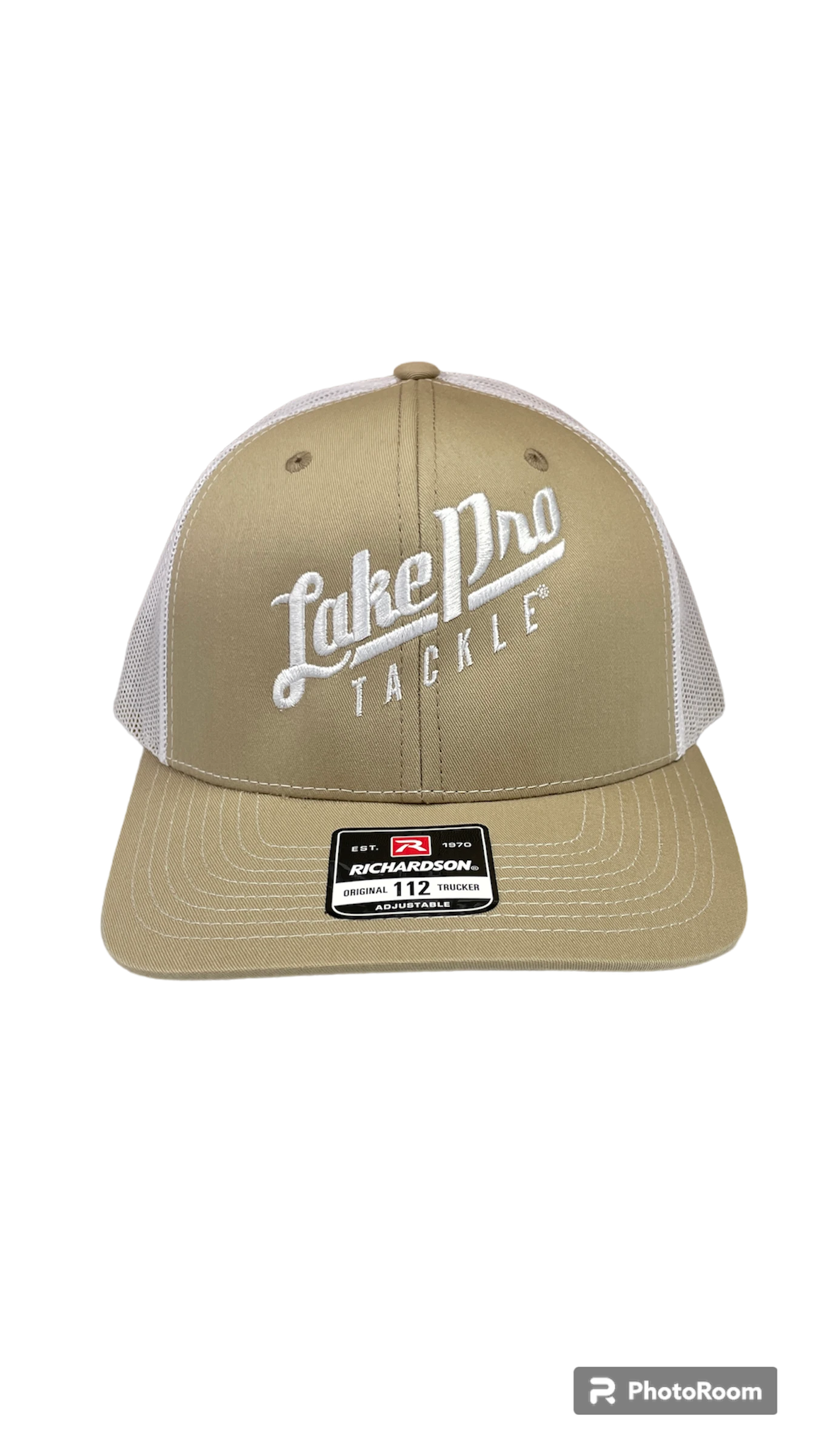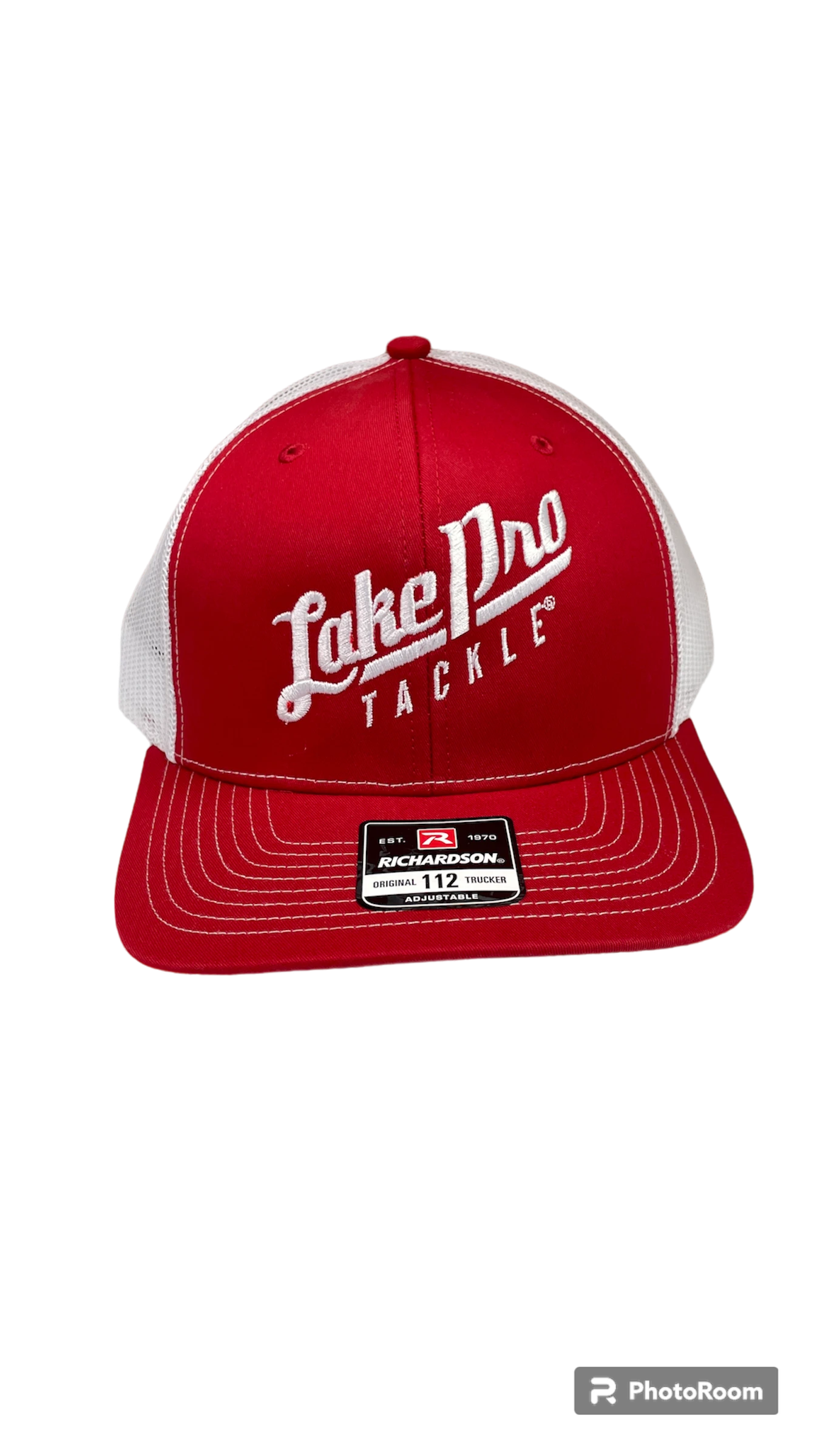 Lake Pro Tackle logo embroidered on mesh-backed cap. Richardson 112 original trucker cap.