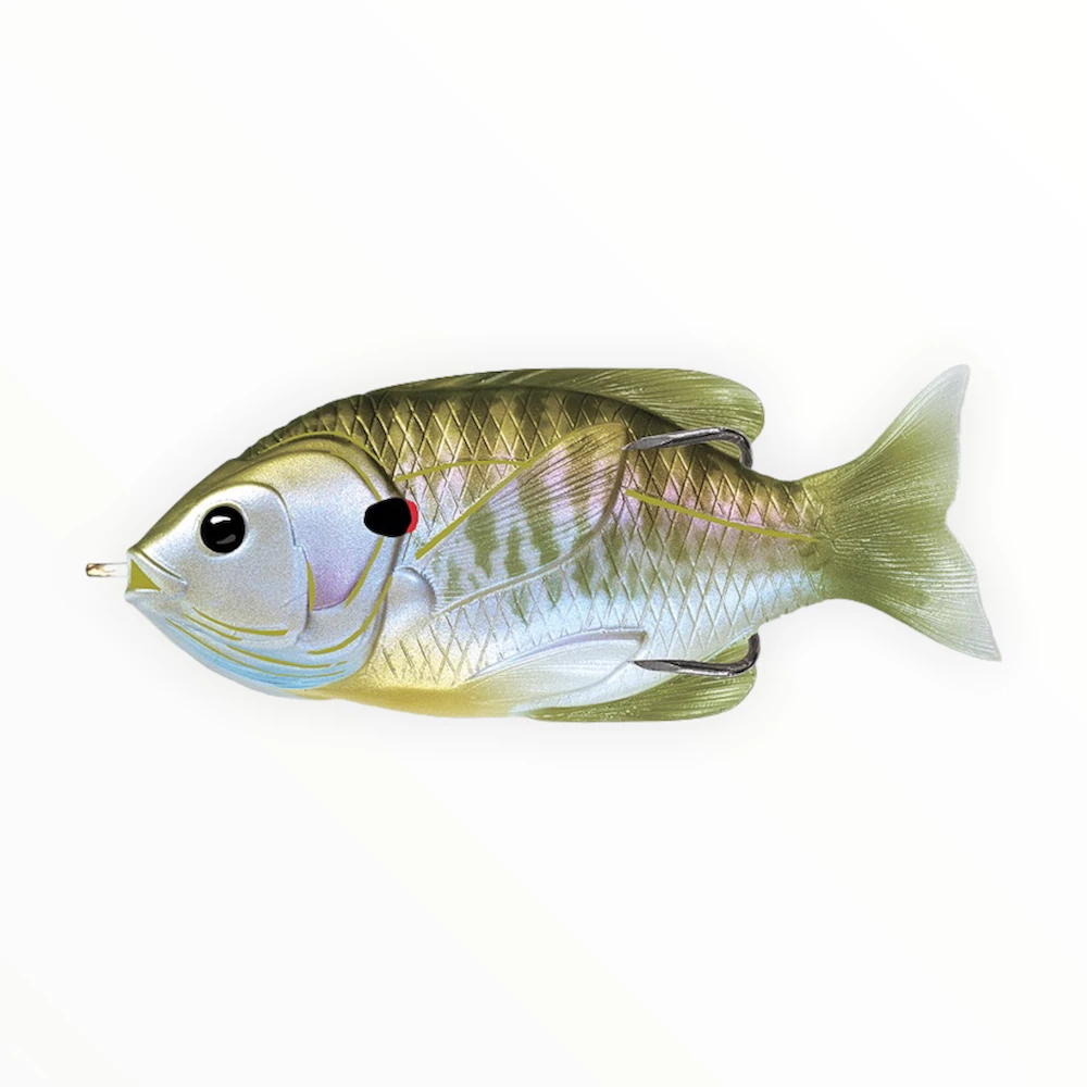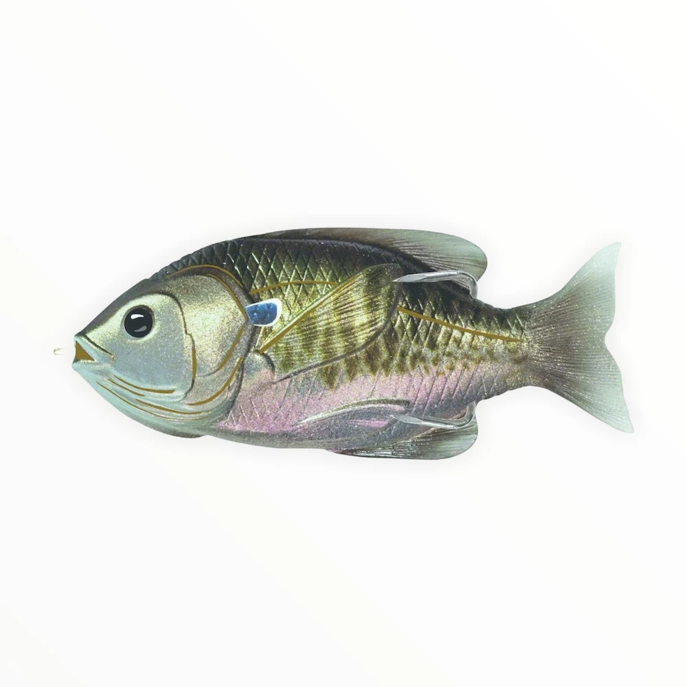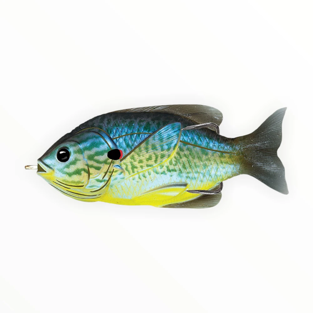 Replicates a juvenile Sunfish, pushed to the surface by predatory fish. Ideal for Largemouth Bass and Northern Pike. Custom double hook. Weedless design makes it ideal for the thick slop. Easy to walk slow with a 180° swing, or walk it fast to create a bubble trail. High hook up ratios.