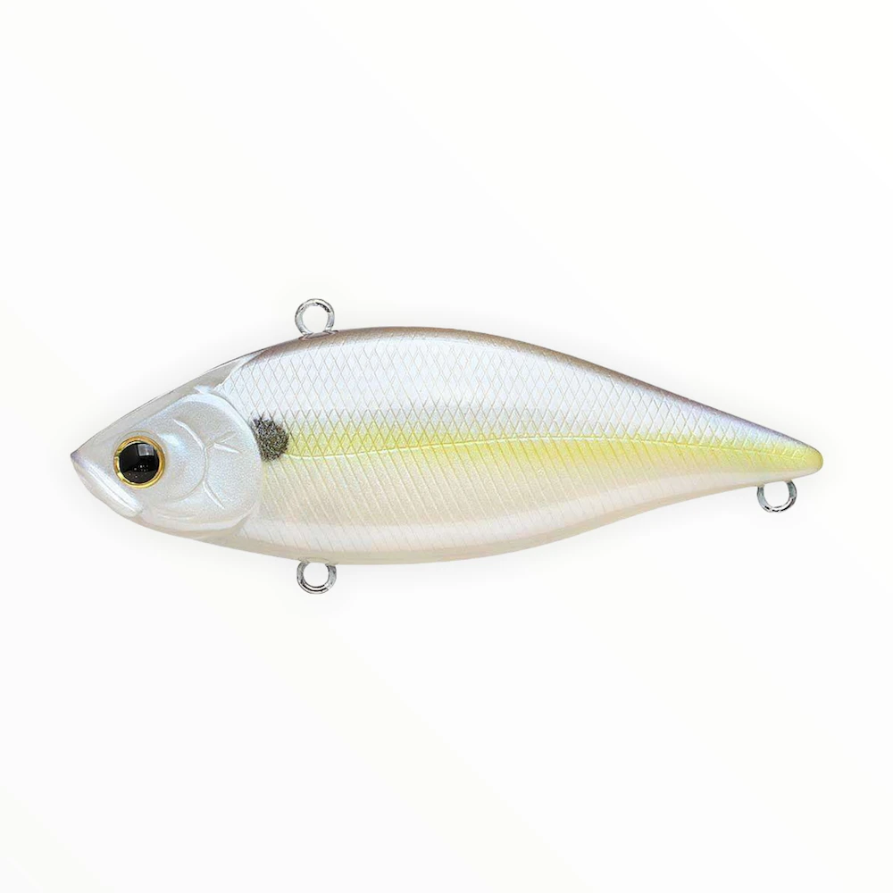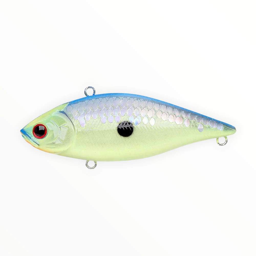 The Lipless Crankbait definitely stands alone. These three inch, 3/4 ounce baits have the look, sound and size that fish find irresistible. The brass and glass rattles create a loud, unique sound, and the forward weight design makes these baits cast like bullets. Equipped to handle depths down to 15 feet, the natural shape, tight wobble, and vibrating action unique to the LV series is like a dinner bell to unsuspecting fish.