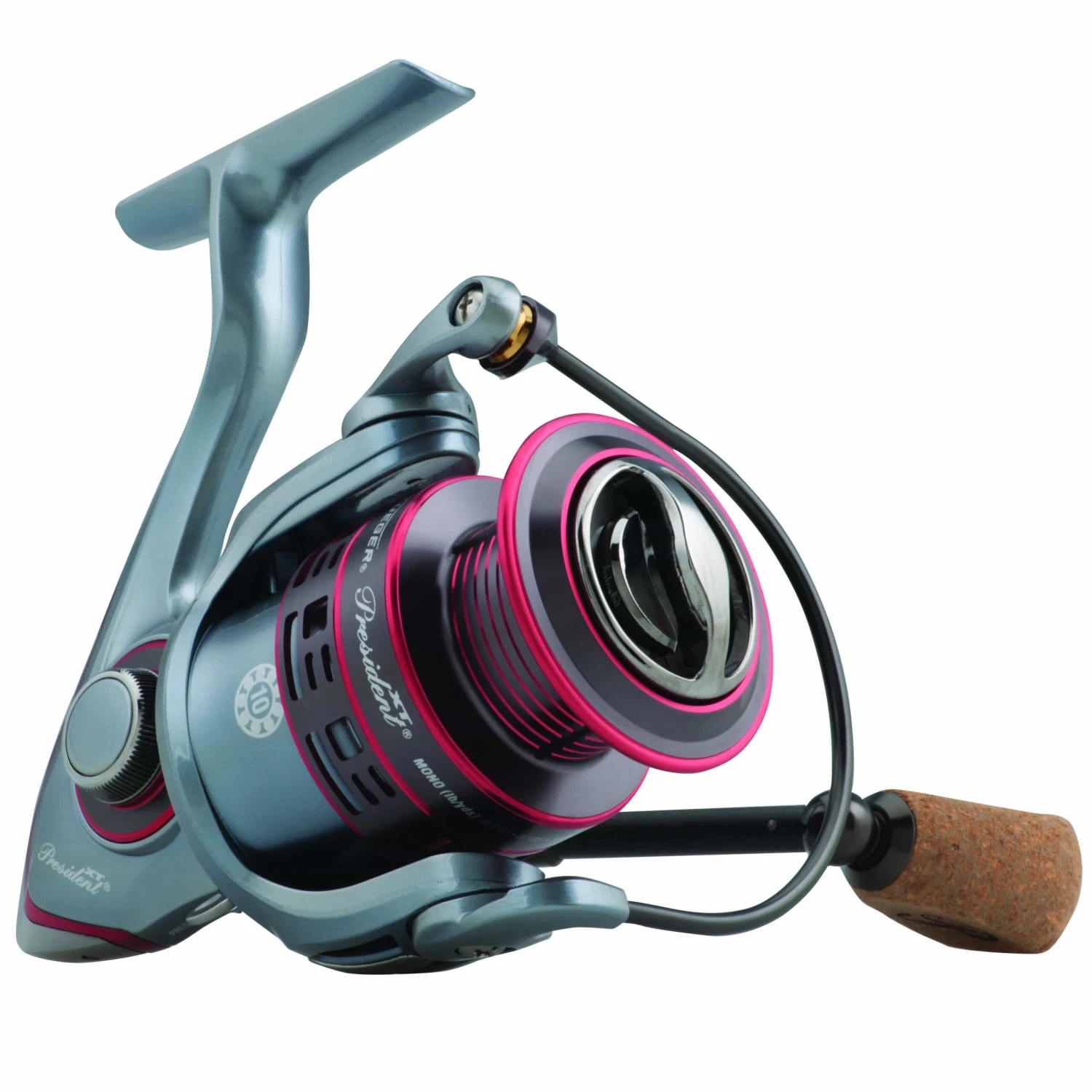 The President XT® spinning reels take the President® to the next level of performance. These lightweight reels are ultra-fast thanks to a high-speed gear ratio. Featuring an aluminum main shaft, aluminum pinion gear, sealed drag, carbon fiber handle and a rubber cork knob.